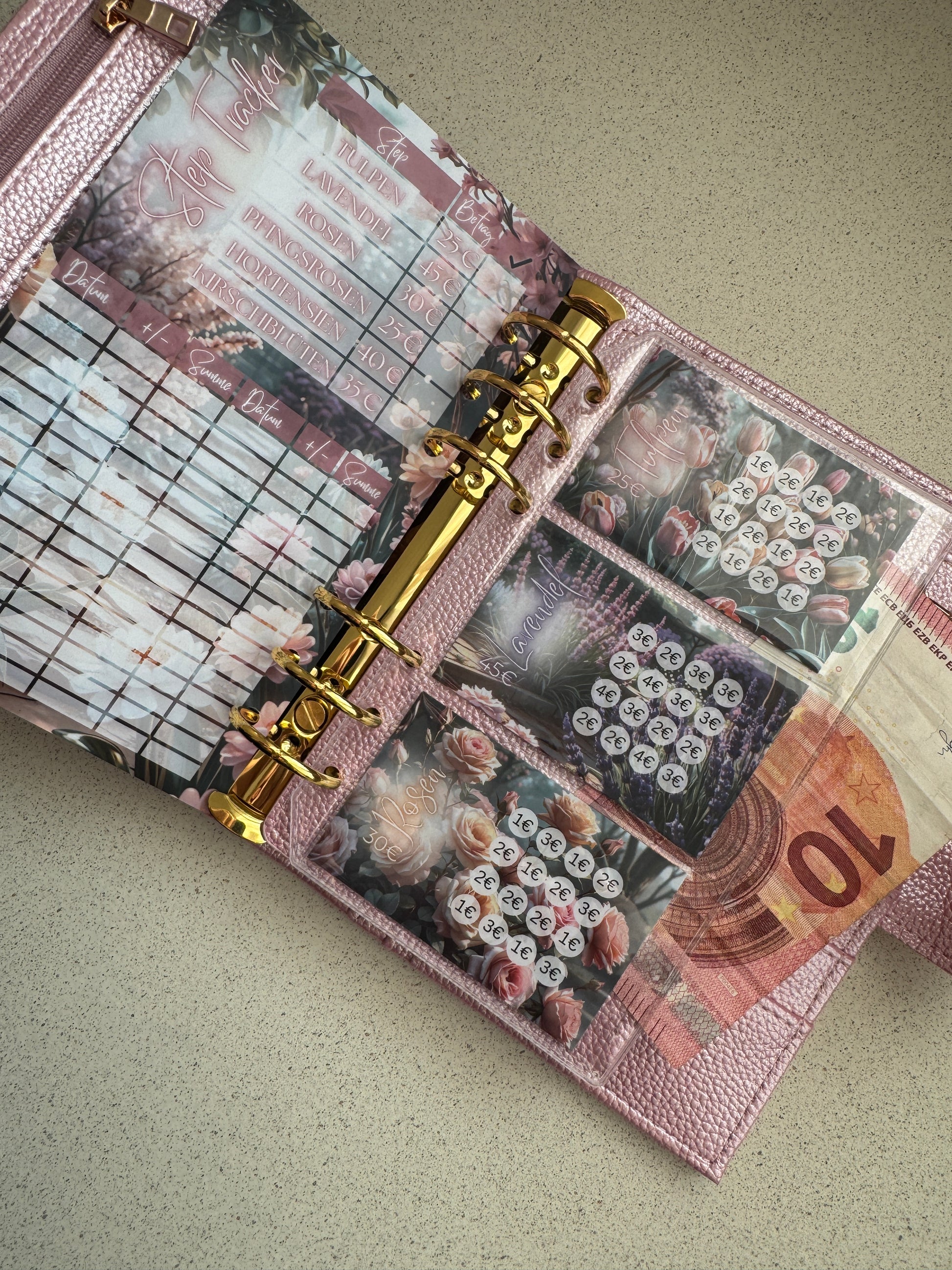 200 € Mini Sparplan | PASTEL GARDEN | Sparchallenge zum einheften | matt foliert | A6
