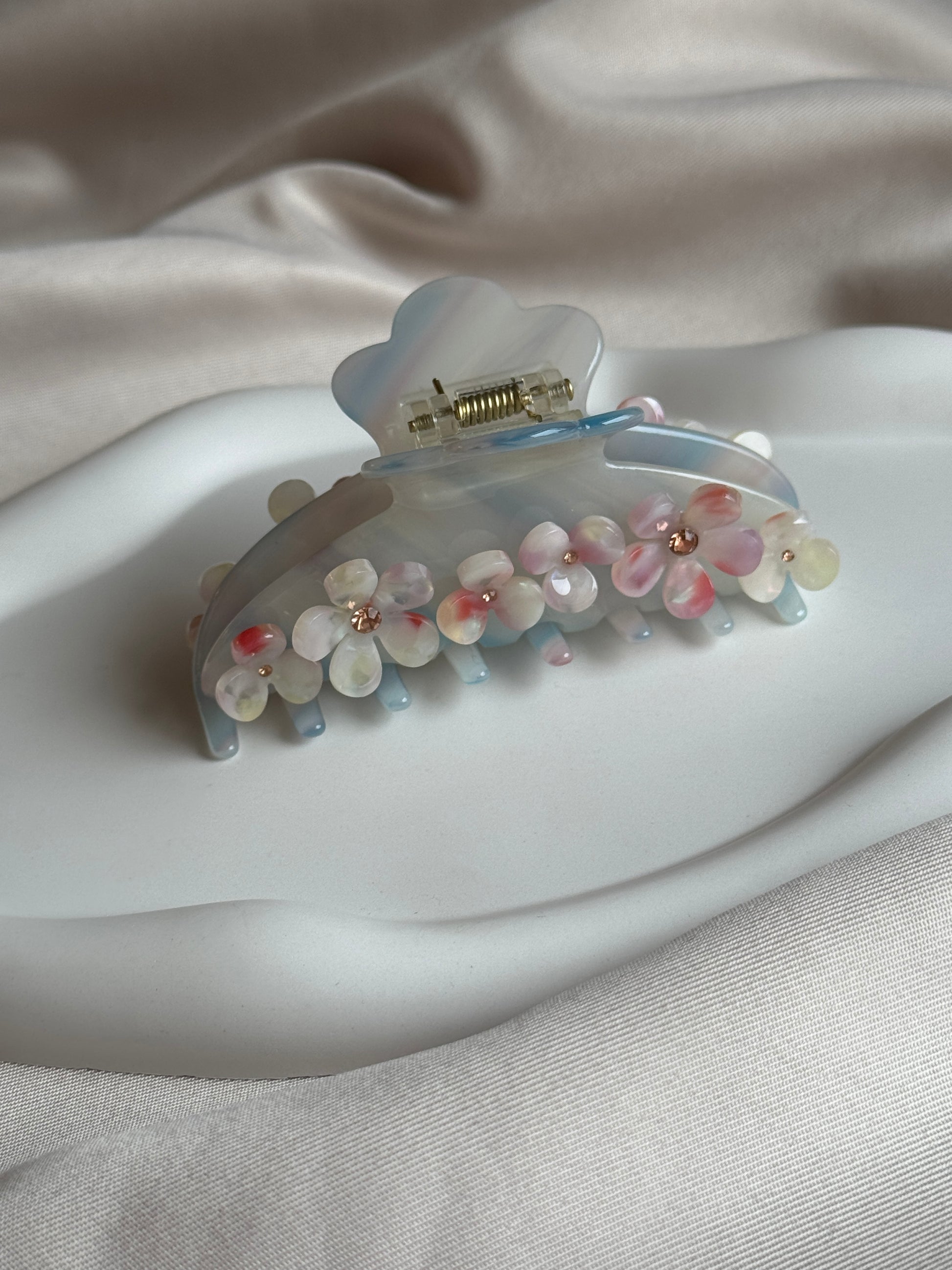 Hochwertige Halbmond Haarklammer aus Acetat mit 3D Blumen